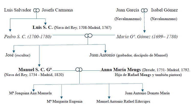 Los desposorios de su hijo Manuel con Anna María Mengs, también pintora de corte del infante D. Luis y académica de honor de la Real Academia de Bellas Artes de San Fernando, hicieron a nuestra coterránea consuegra del destacado artista bohemio Rafael Mengs, pintor de cámara en las cortes europeas de Dresde, Madrid, Viena… [2]